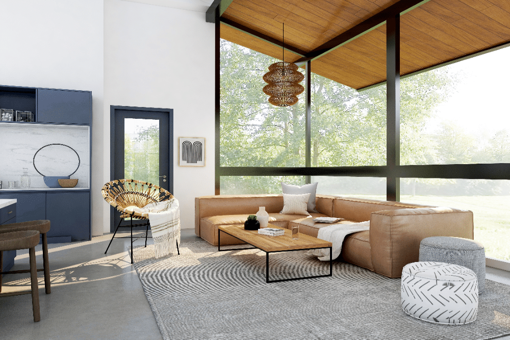 While designing an organic modern living room, it is important to remember that ‘Less is More.’ Take a minimalistic approach with the intention of sustainability to carefully blend modern style with biophilic elements that connect us with nature physically, mentally, or acoustically. To bring the best of the layout, opt for neutral colors to offset the natural beauty of the organic elements.
