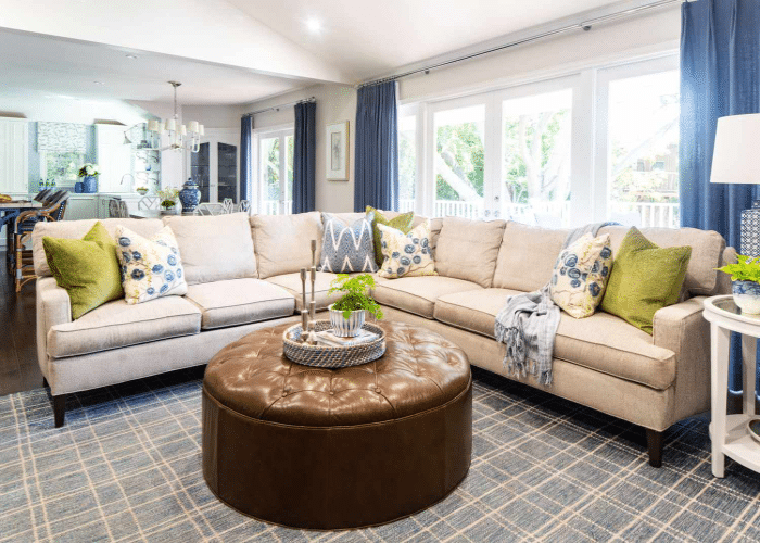 For example, if you have grand millennial-style decor, you should look for patterned upholstery or pleated cushion covers. If most of your interior is made up of dark wood, consider using a dark leather sectional sofa to bring out the whole look.