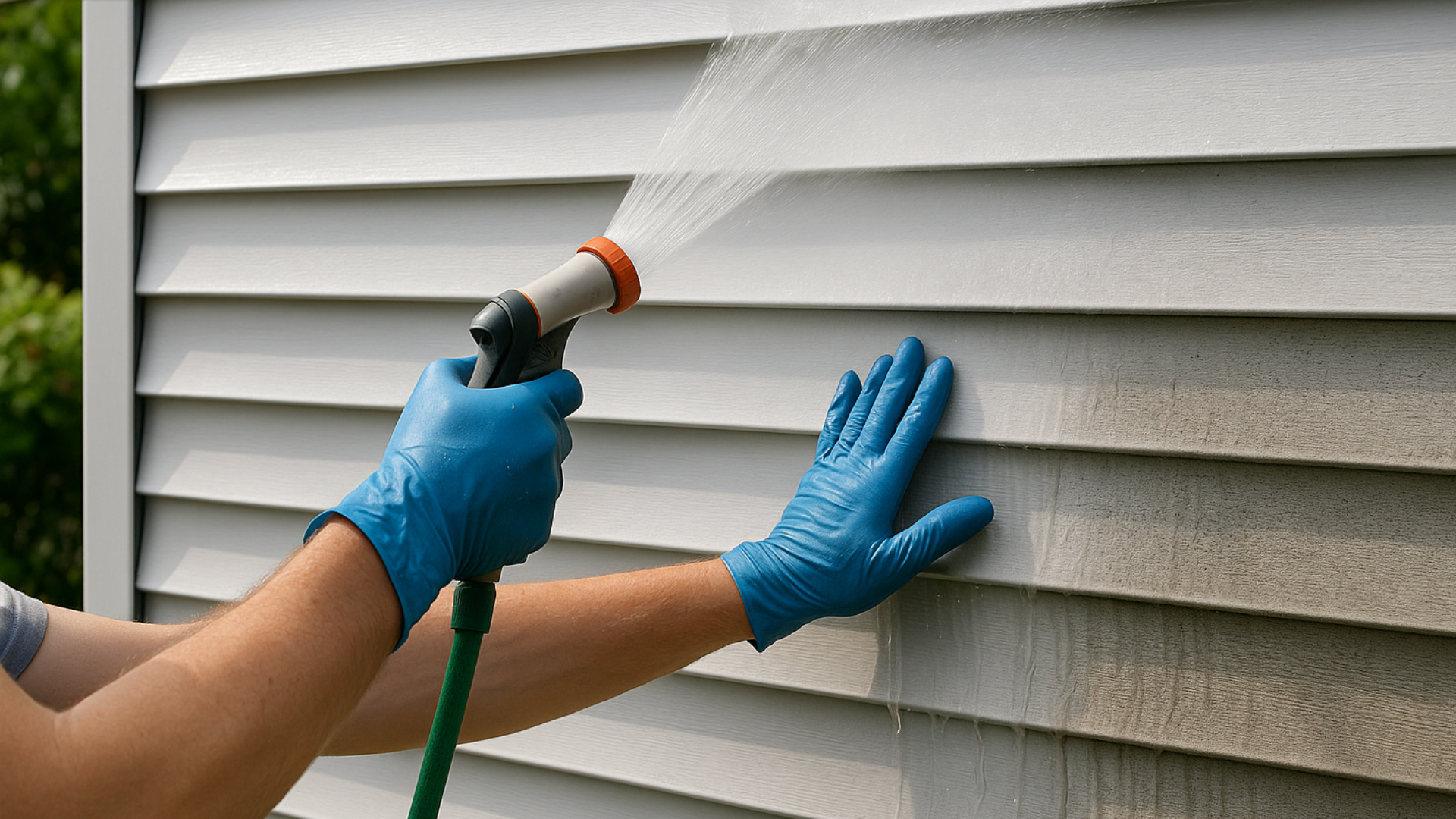 If you want fast results without damaging your siding, here’s a simple method. First, spray the siding with water using a garden hose.