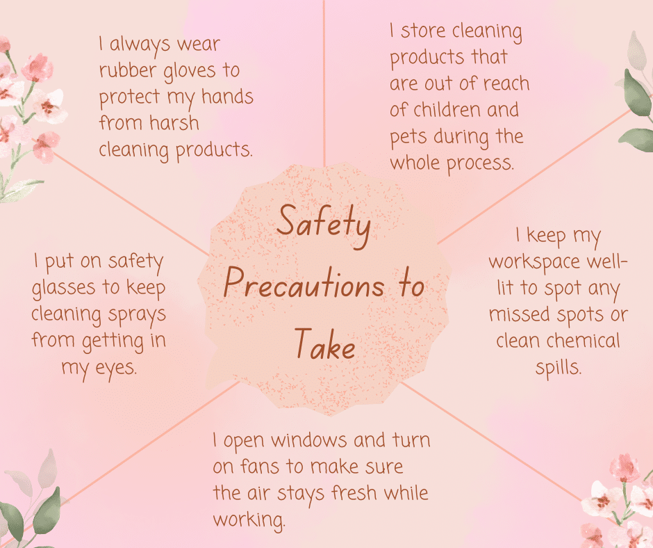 - Rinse Phase: I take a clean rag with plain water. I wipe down all surfaces to remove cleaning products.