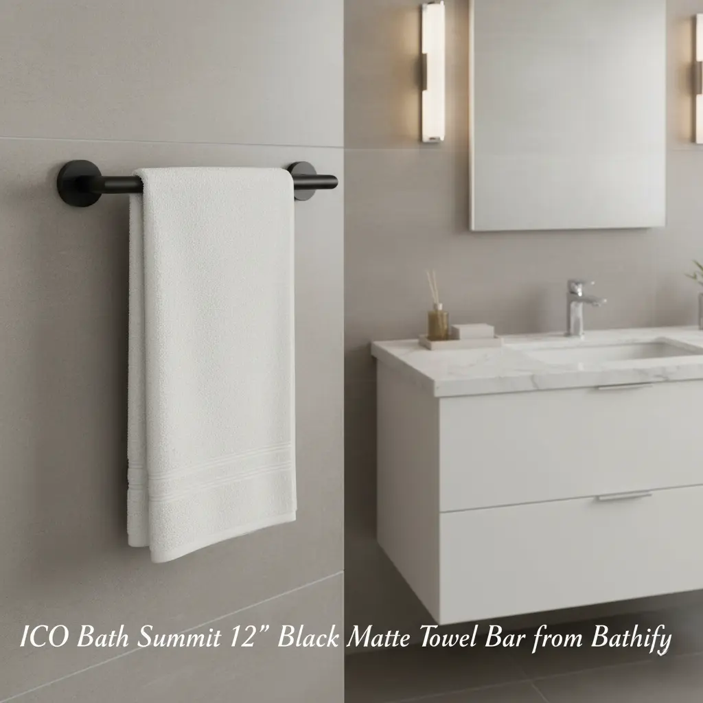 To add a bit of character, layer in textures and accents – the warmth of natural wood, the elegance of brushed gold, or the bold calm of matte black fixtures, like a matte black towel bar. These small touches add depth and sophistication without taking away from the peaceful mood.