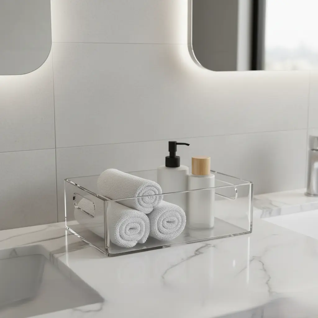 A calm space creates a calm mind – and that’s the heart of any spa experience. Clutter is the enemy of peace, so start by clearing the excess. Keep only what you love and use every day. Store the rest neatly in woven baskets, ceramic jars, or sleek containers that complement your bathroom’s aesthetic.