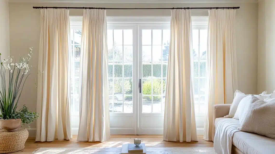 I love using two panels of pinch-pleated curtains on each side of wide windows. This style brings balance to my room. The fullness of double panels makes windows look grand without trying too hard.