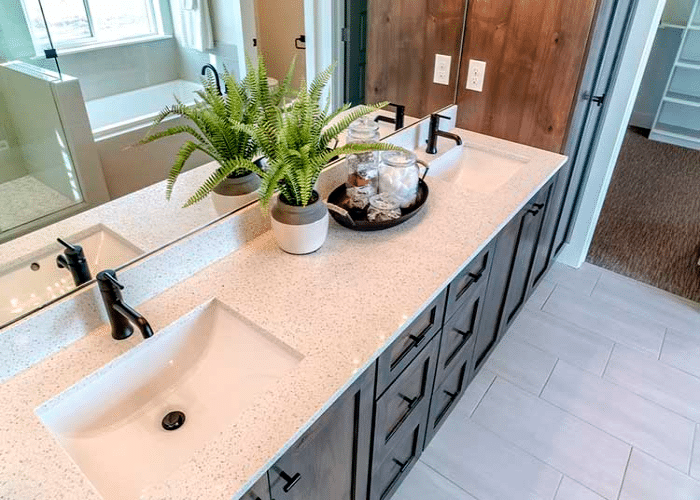Incorporating a plant around the sink corners can brighten the look of your bathroom and make it look more lively and attractive.