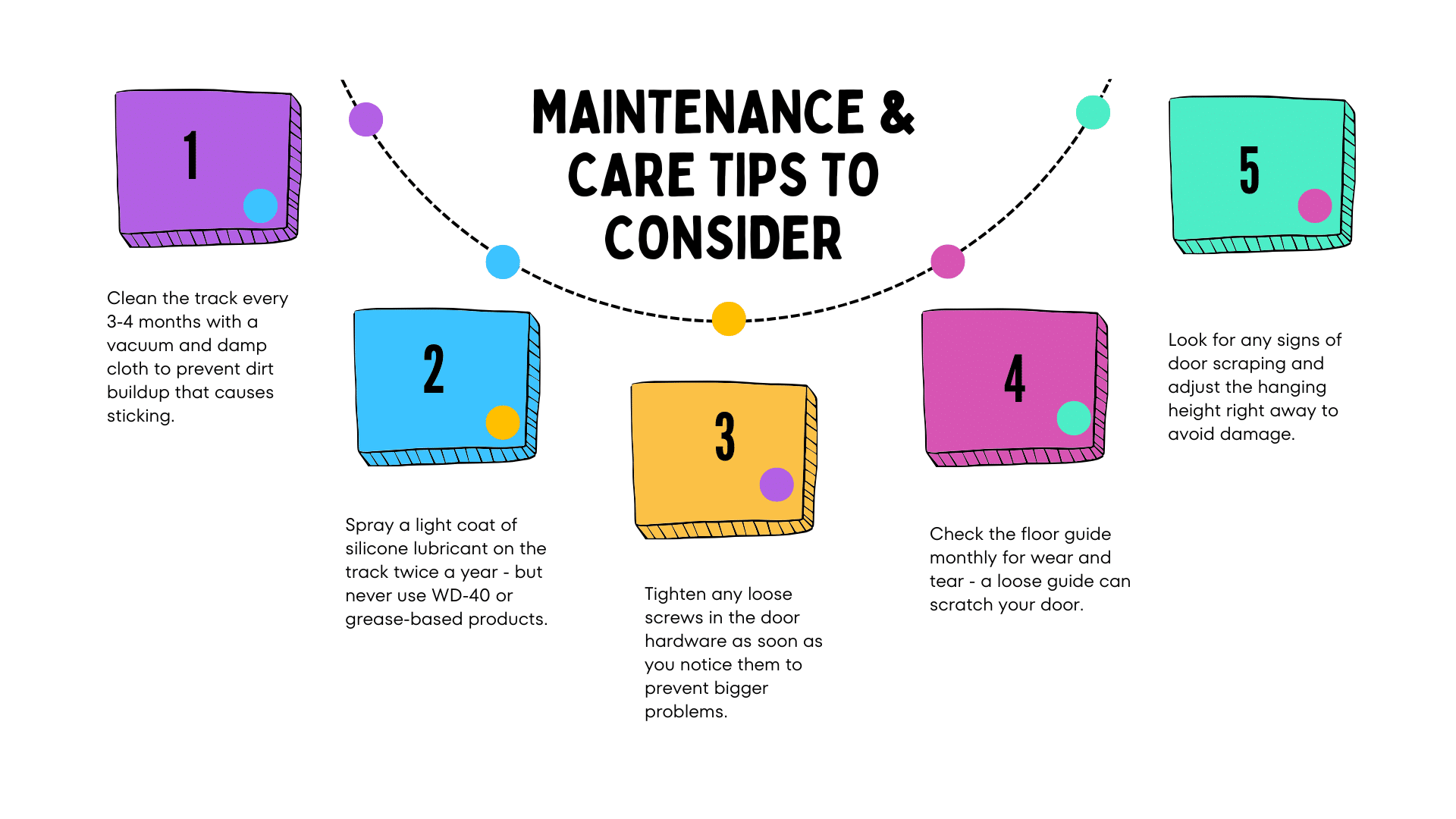 | • Don’t forget to test movement | Ensure the door moves smoothly before finishing the walls. |