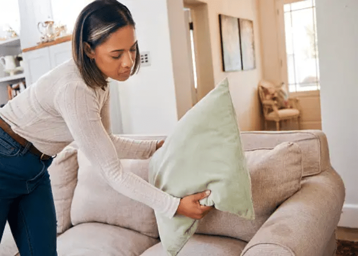 - If the cushions are in the same prints, you can rotate them to make each one get equal balance, and if the prints are different, try covering them up.
