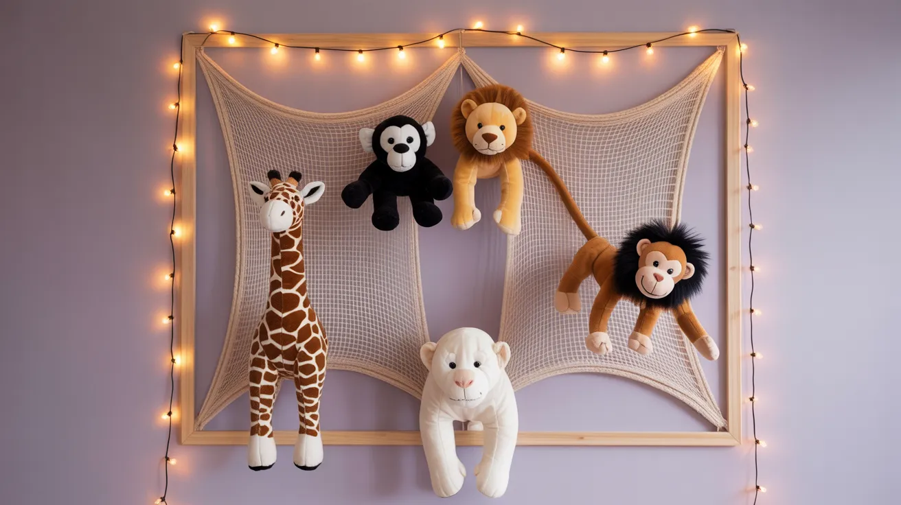 Use strong hooks and ensure it’s at a height your child can reach safely. They’re great for lightweight stuffed animals, giving the room a cozy feel while keeping everything visible and within reach.