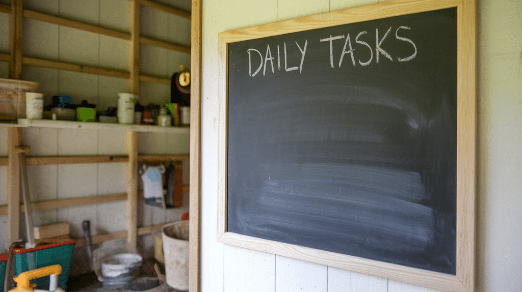- Chalkboard or dry-erase board for tracking feed amounts or cleaning schedules.