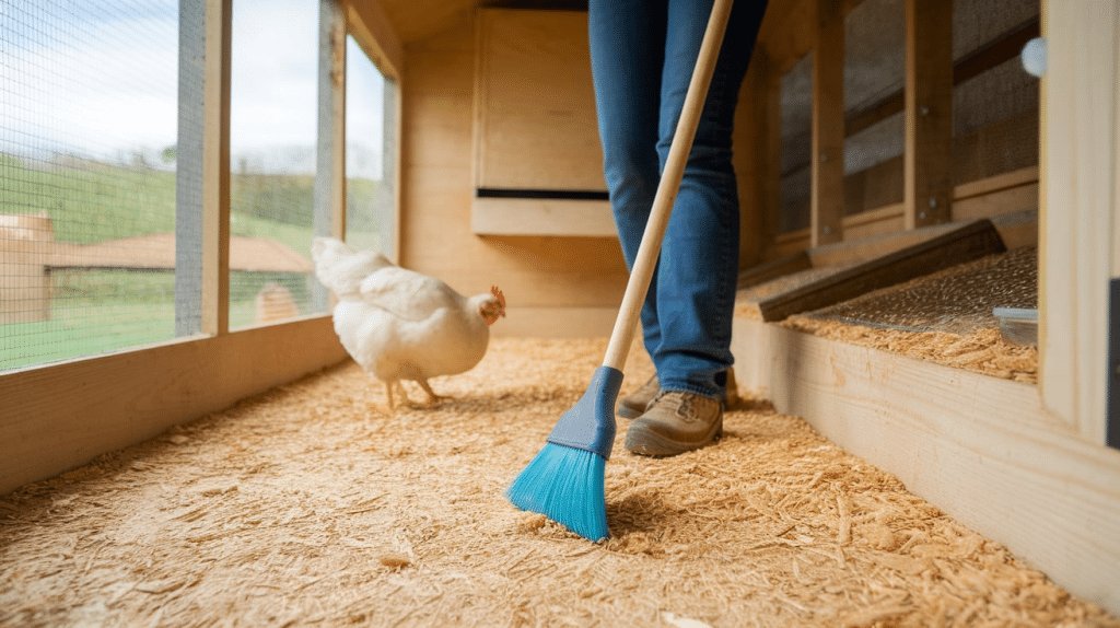 2. Remove Droppings Often: Chickens poop a lot, so scoop out droppings daily, especially from roosting areas. Using a dropping board under roosting bars makes cleanup faster.