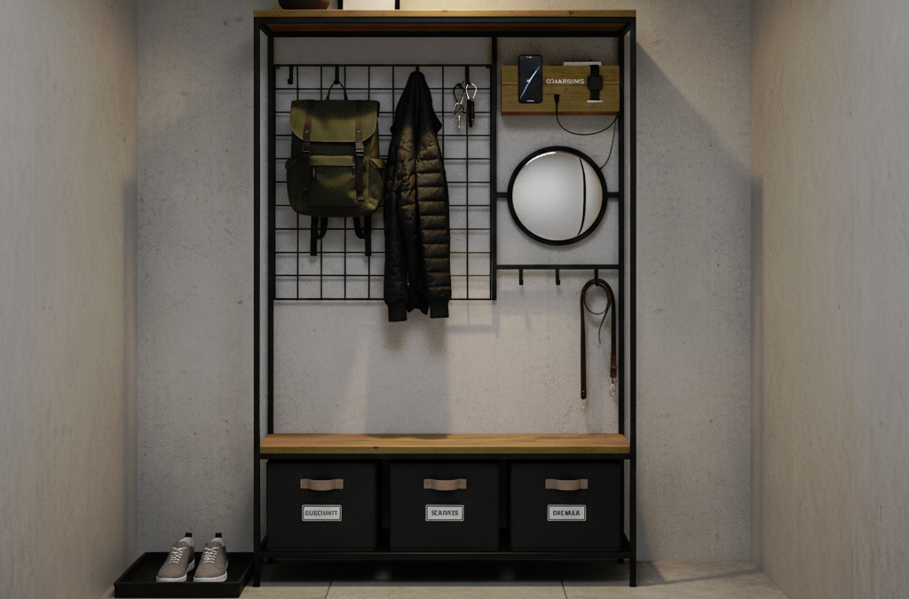 You don’t need a lot of space to make it work. A simple wall rail, a few labeled bins, and a bench can do wonders. Let’s explore how to set one up.