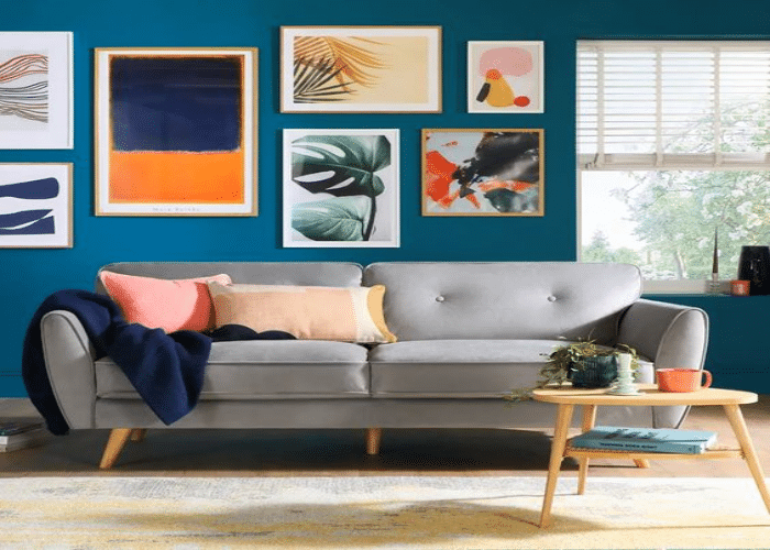 Your light gray couch becomes the perfect backdrop to showcase your artistic skills. Take the wall behind the sofas and convert it into a gallery wall. Hang all the colorful paintings and portraits here. It could be your work or something that you bought and are proud to show off to your guests. The more vibrant the artwork, the better the space looks. Remember to select a stylish silhouette for the sofa, though.