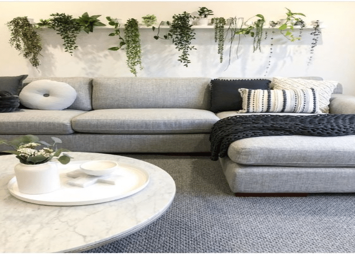 Since gray is an earthly color, it blends well with natural greens. This means that you can redo the decor to add a lot of natural vegetation and planters to your living rooms, surrounding the light gray couch.