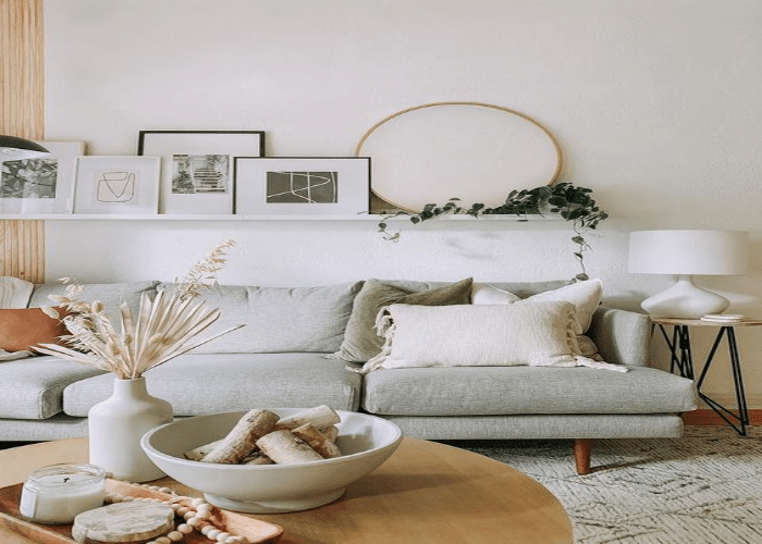 Since gray tends more towards the neutral tone, therefore, a neutral decor gels well with your light gray couch. You need to understand, however, the undertones of the gray. Warmer shades of gray complement warmer colors, while cooler shades gel well with cooler tones. For an enhanced neutral look, pair the couch with wood, for example. Use wooden furniture like tables, baskets, floating shelves, etc.