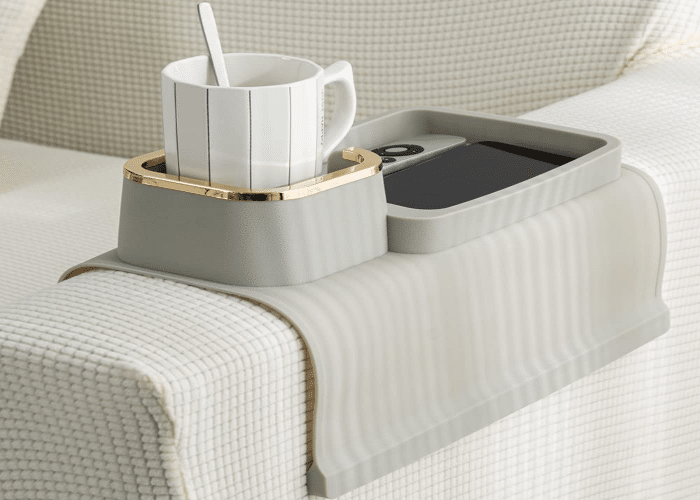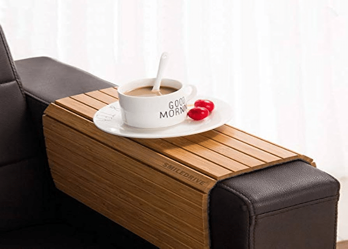An armrest tray would be a smart choice to accessorize the sofa to enjoy any eating activities on the living room sofa, such as having a cup of tea or coffee or munching evening snacks while watching a TV program without worrying about food spills and stains. These trays are portable so that you can have them on any side armrest or even on the sofa, according to your usage.