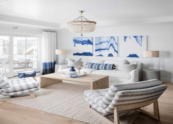 The living room is the most trafficky area of any house, and we put efforts into adding the utmost comfort to this crowd-loving space. It goes the same with the coast-inspired living rooms because they demand a way more comfy and carefree atmosphere to bear heavy seaside obstacles like sand, sun, salty air, seawater, and many others.