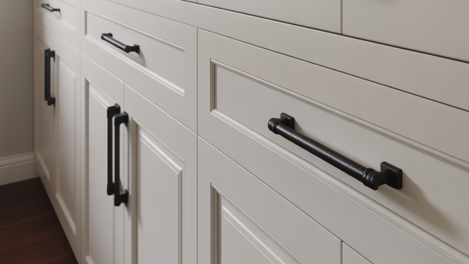 Modern flat-panel cabinets benefit from sleek, linear hardware that reinforces their clean lines. Bar pulls, edge pulls, or minimalist tab handles maintain the contemporary aesthetic without visual interruption.