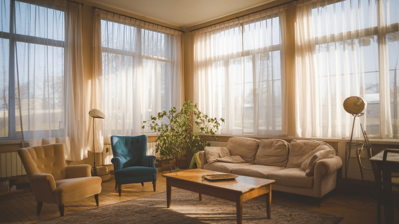 Sheer curtains or simple blinds are great choices, as they allow natural light to fill the room while still offering privacy.