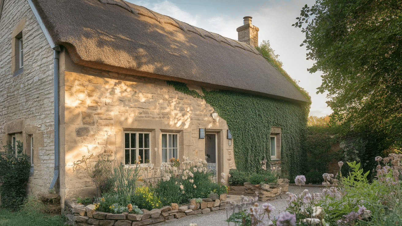 Cottage-style homes often feature natural materials like wood, stone, and linen.