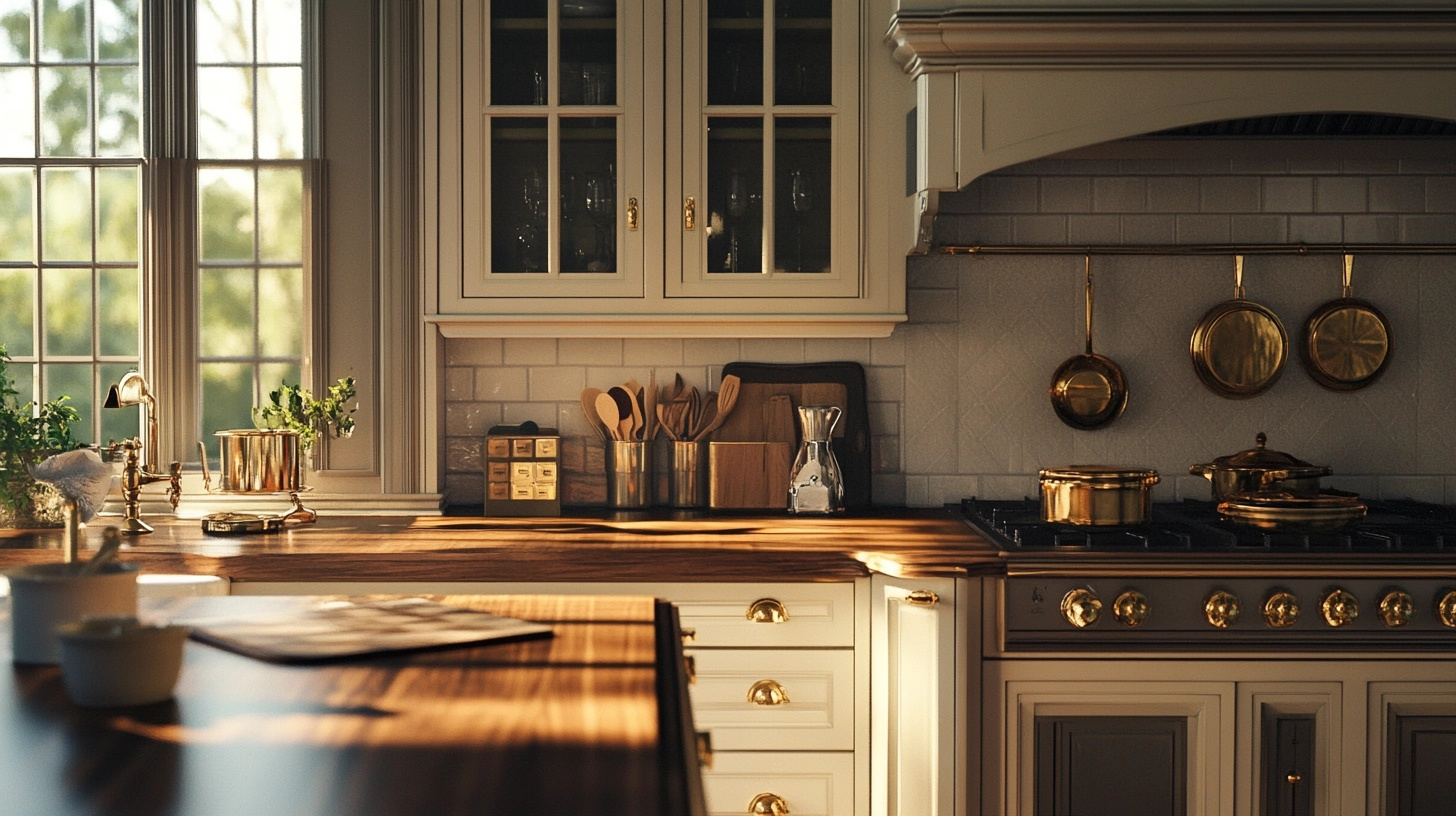 Their visible frame and precise fit reflect traditional craftsmanship, helping the kitchen feel true to the home’s heritage. Period-specific details like beaded frames or raised panels can recreate the look of original built-ins.