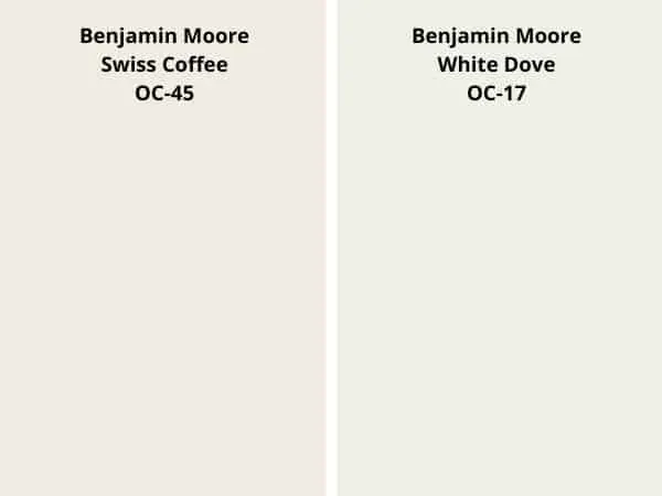 BM Swiss Coffee belongs to the yellow-hue family. The white dove, too, is from the same hue family but is whiter and brighter compared to BM Swiss Coffee.