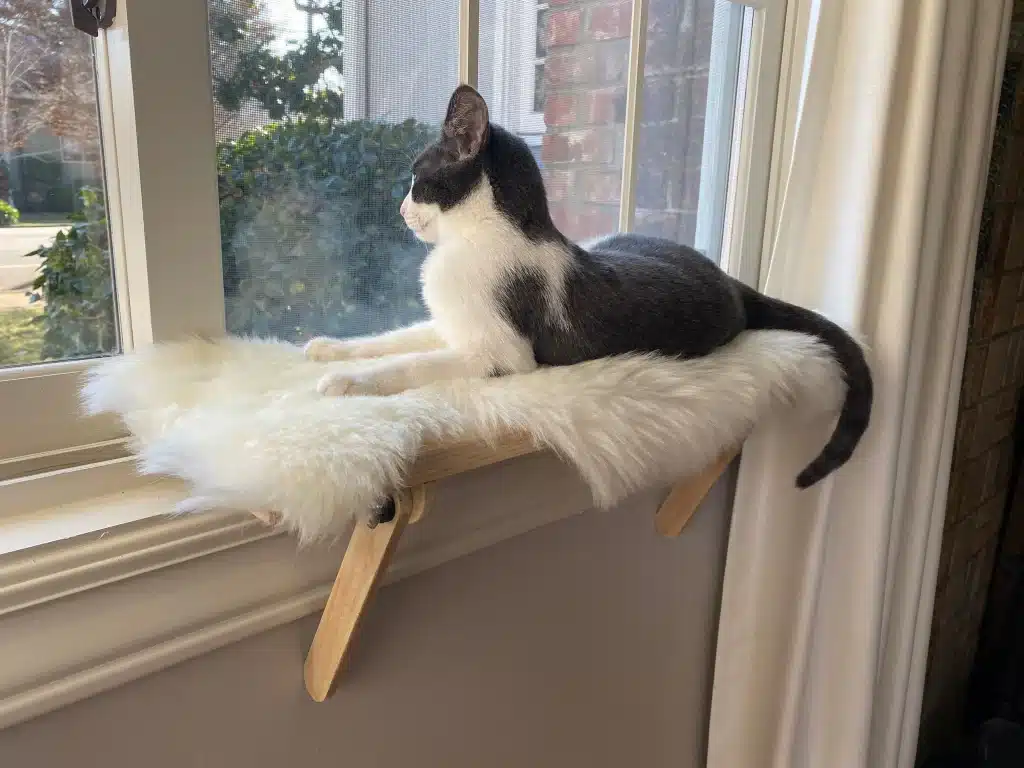 Window perches come in numerous shapes and sizes, so find the one your cat enjoys the most. While wildlife viewing is a priority, felines also enjoy basking in the sun to warm their bodies and stretch out. Place a cushioned perch on a window with plenty of natural light. Your cat may sleep more in this wildlife viewing stand than in their designated beds.