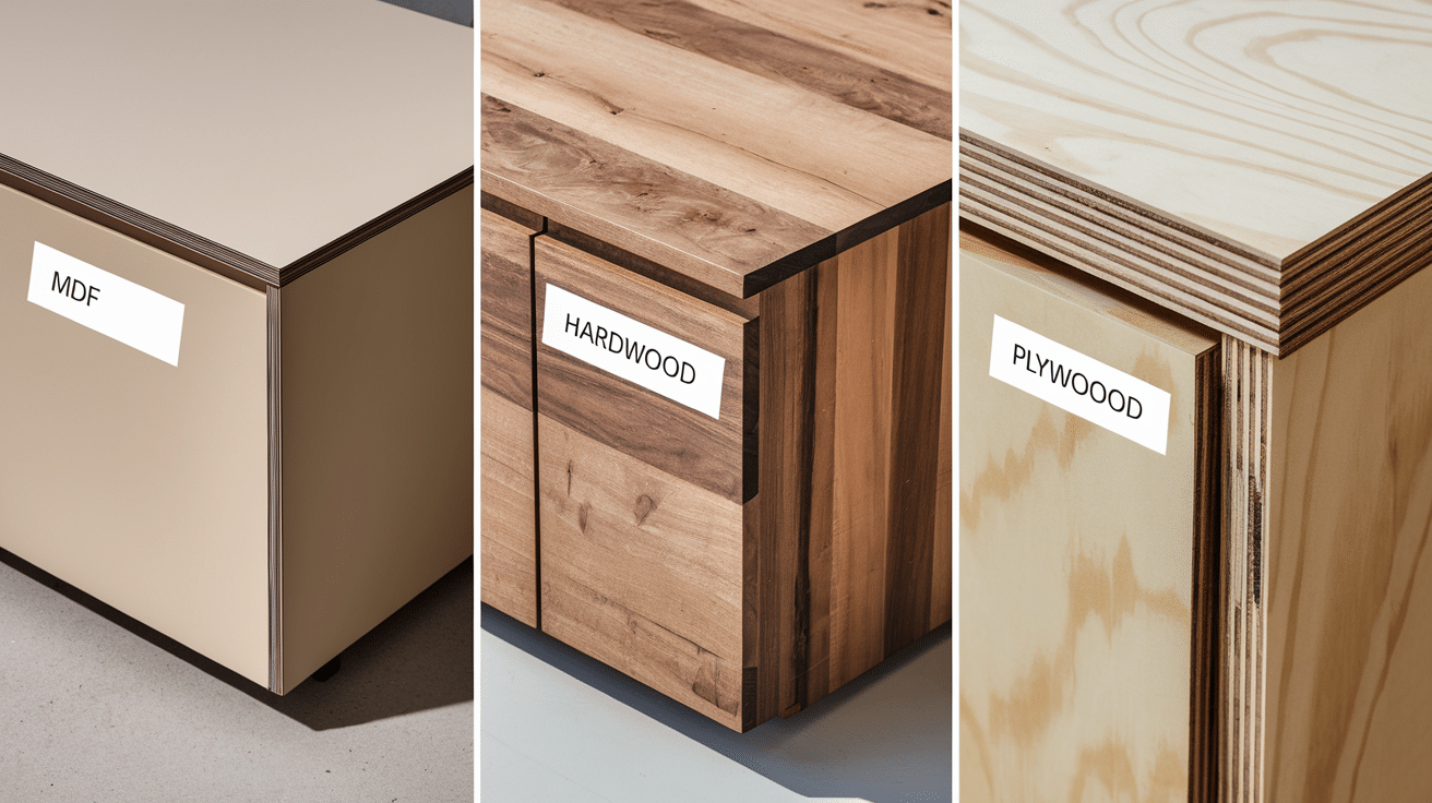 Plywood: Plywood is made from thin layers of wood bonded together. It’s strong and resistant to warping with better moisture resistance than MDF.