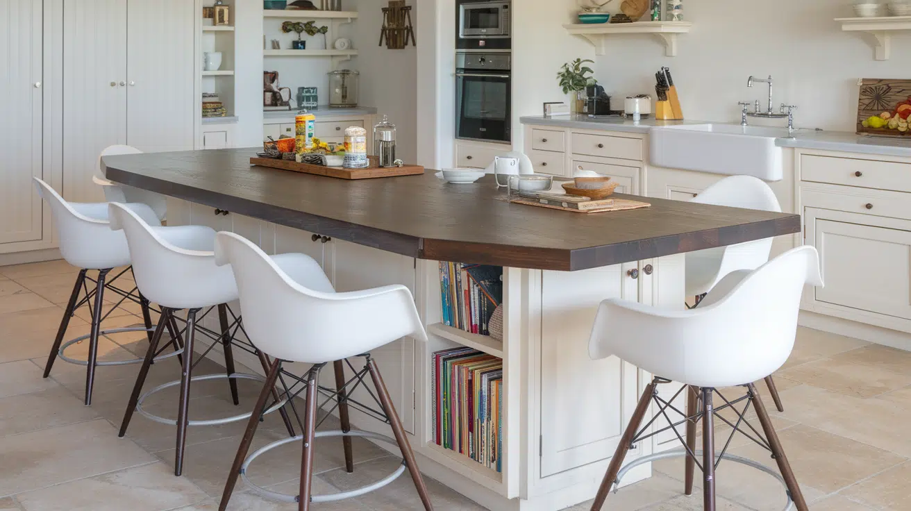 They create a natural gathering spot for conversations and work well in kitchens with unusual dimensions or angles.