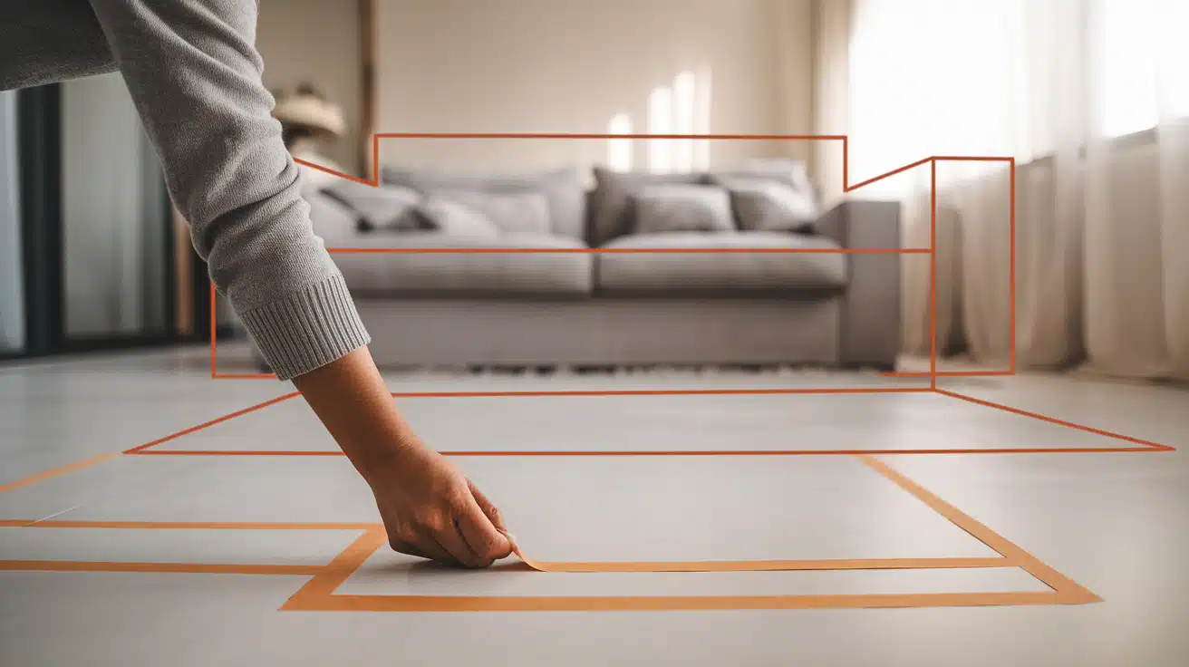 Using painter’s tape to mark furniture placement directly on the floor is an excellent way to: