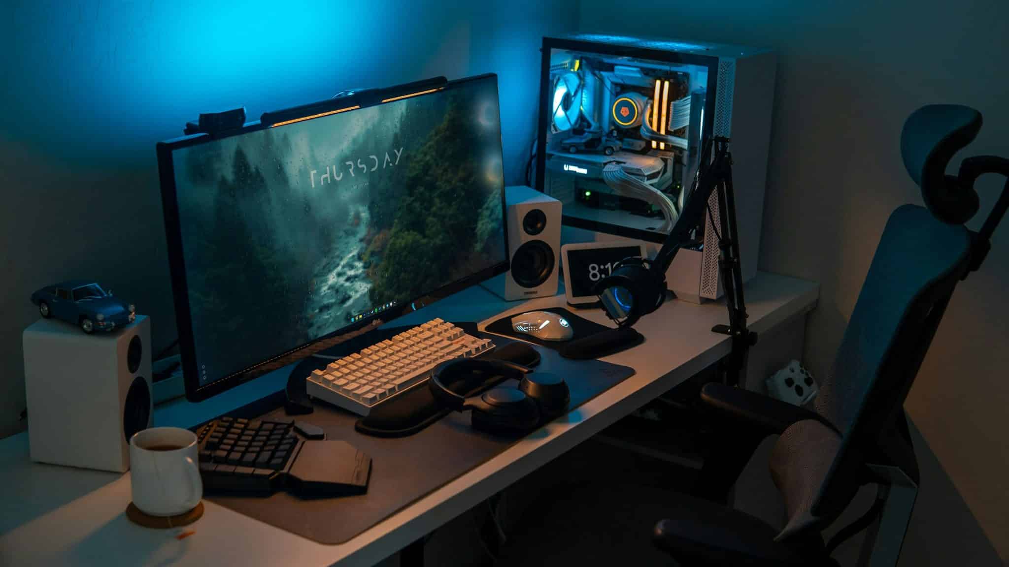 Lighting for gaming usually falls into three categories: ambient, task, and accent lighting. You can think of ambient lighting as the general lighting in a room that serves to create a base layer of light. On the other hand, if you use light to illuminate specific objects like your mouse or keyboard, that would be considered task lighting.