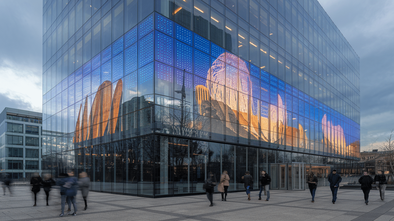 Building fronts now use screens and lights to change how they look. These displays can show company information, art, or react to weather and people passing by.