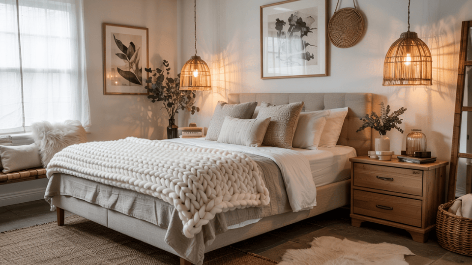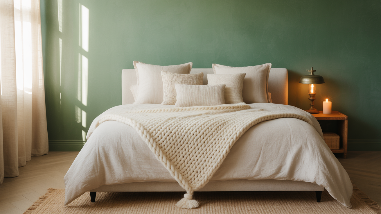 Add a chunky knit throw or a vintage quilt to bring warmth and personality. Mixing fabrics like cotton, wool, and linen helps create a cozy, lived-in space that still feels polished.