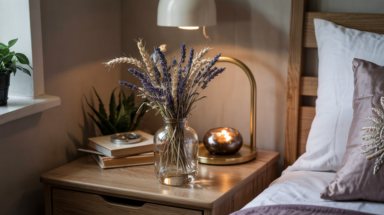 Fresh flowers are great, but dried ones last much longer and require no care, making them perfect if you’re busy. I love using dried lavender, cotton stems, or even wheat in a simple glass vase or a small ceramic jug.