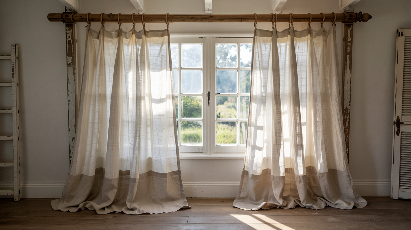 Linen curtains are perfect for softening the room and letting in natural light. Their casual, easy look fits the farmhouse style well.