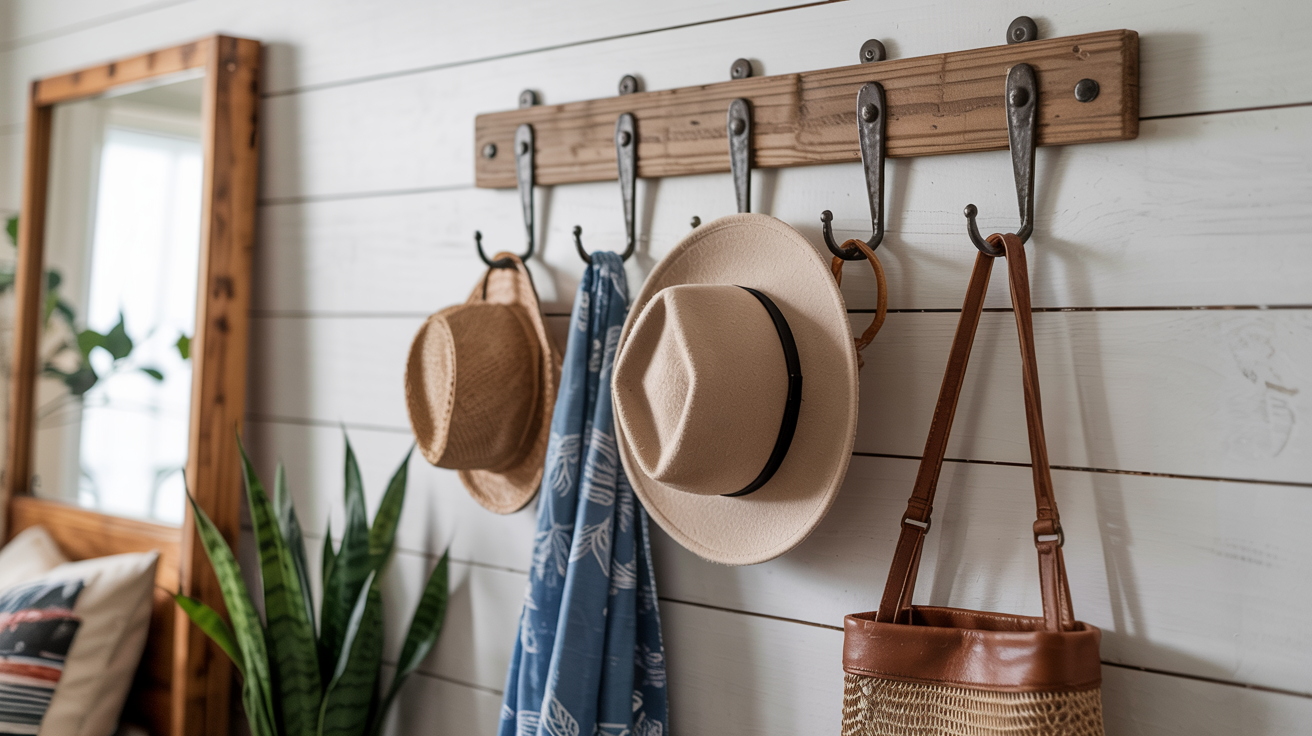 Group a few hooks together in a row, and you’ve got a little display wall that’s both stylish and practical. For an extra touch, you can even hang a small frame or a dried wreath above them.