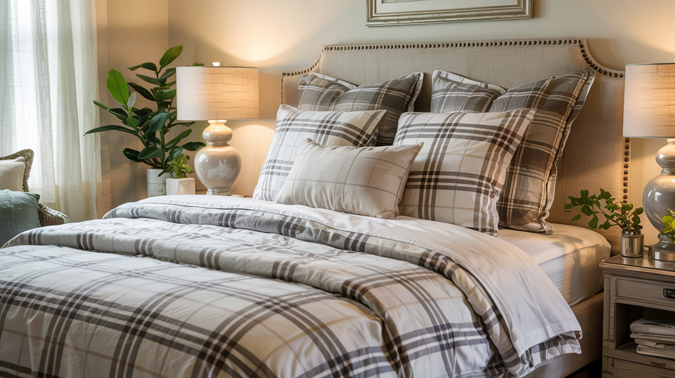 Plaid bedding feels cozy and lived-in, which is exactly the mood you want in a farmhouse bedroom. I usually opt for soft colors like cream, gray, or faded green because they blend nicely with florals and solid linens.