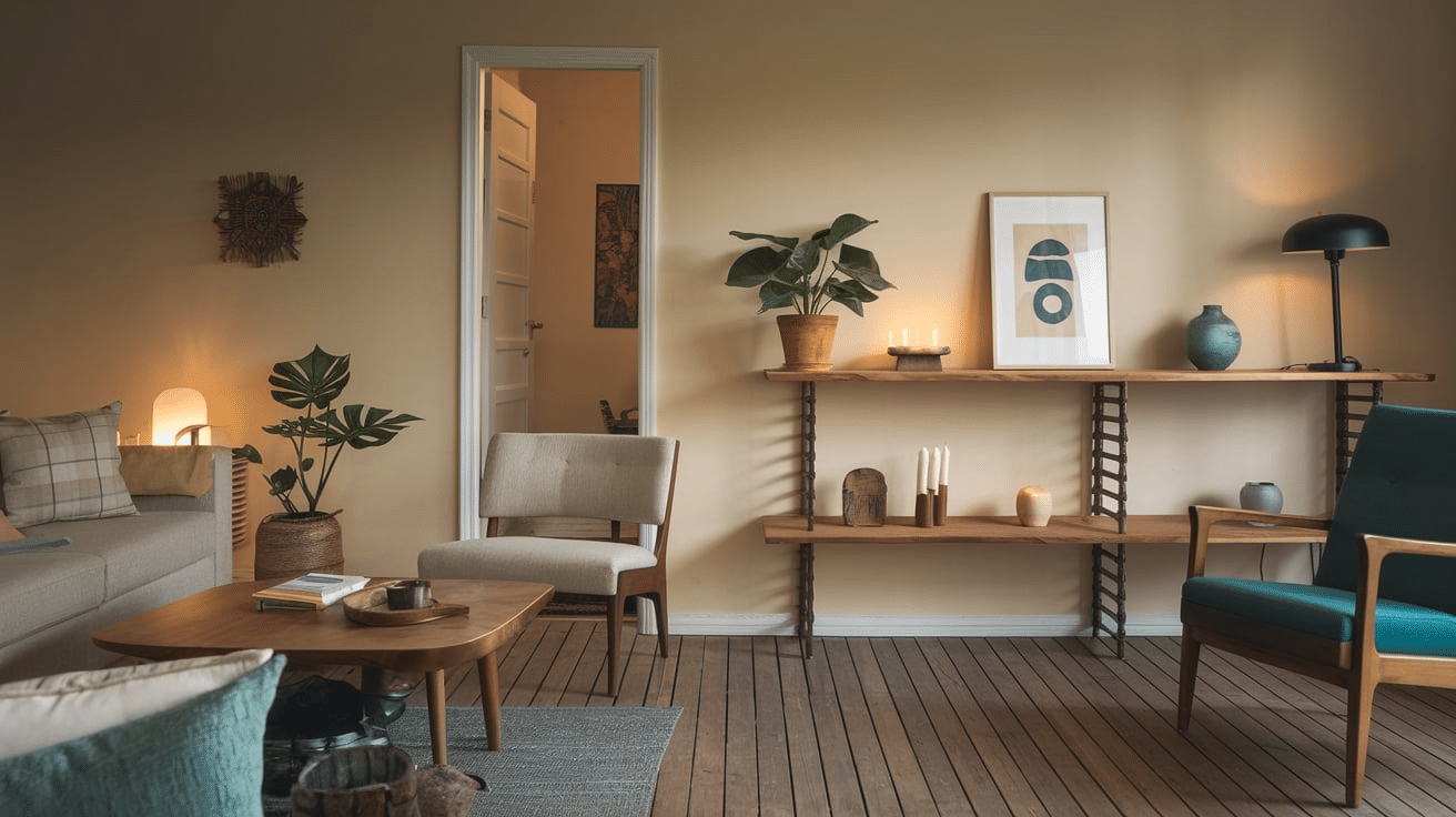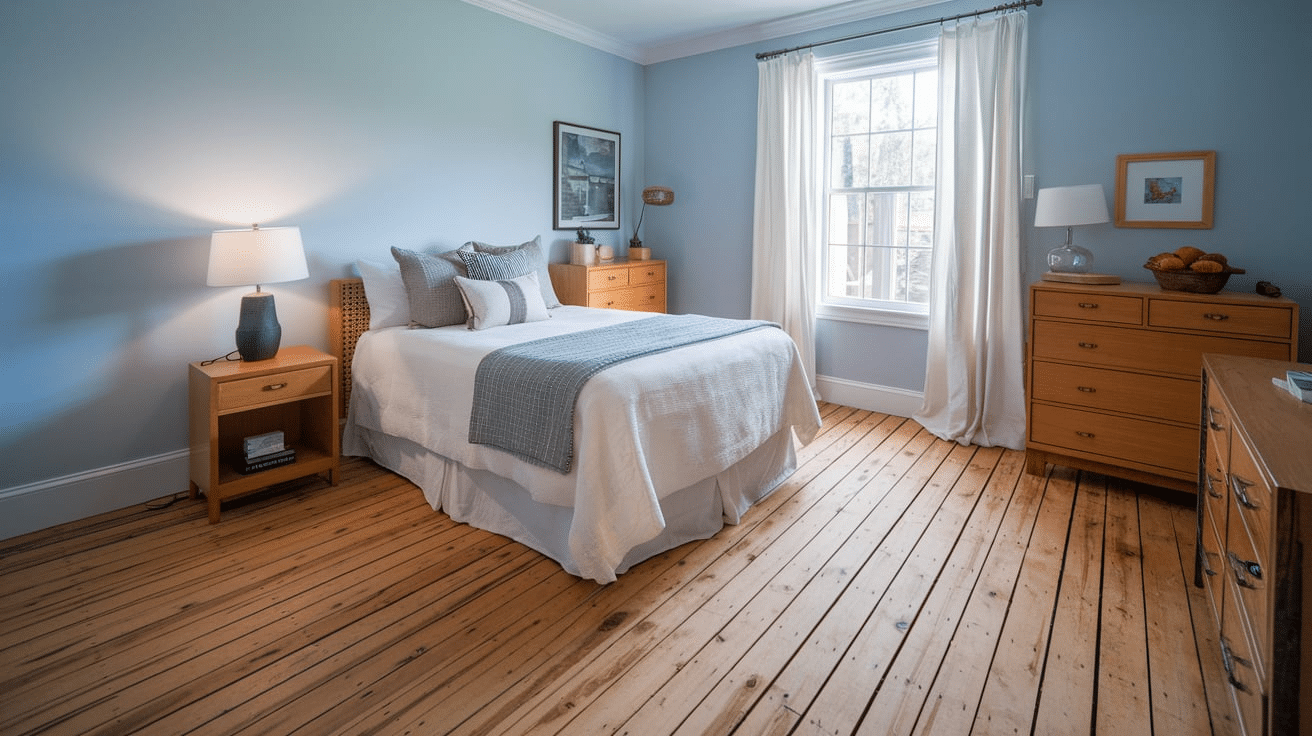 Wood floors naturally bring a lot of warmth to a room. Balance this by using cool-toned colors like gray, blue, or white for walls and furniture to keep the room from feeling too warm. If you prefer a more rustic look, earthy tones like browns and greens work well with the natural tones of wood.