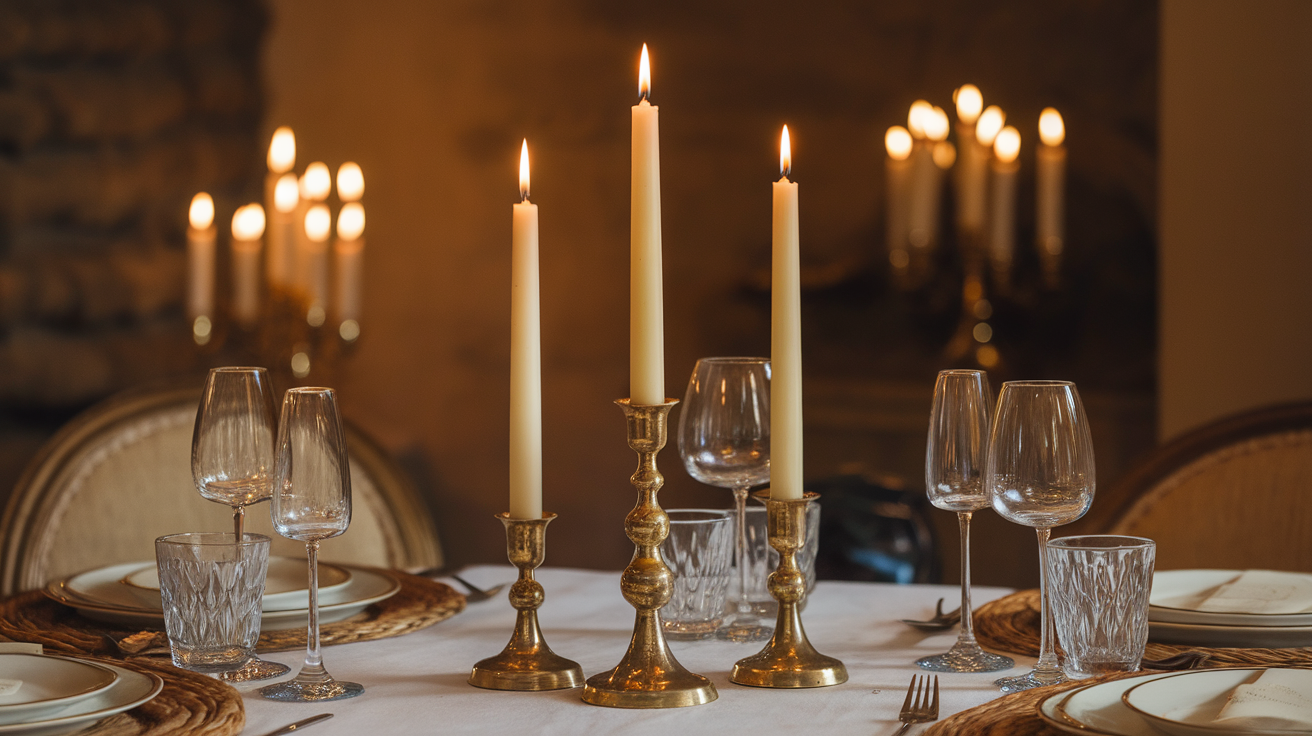 The soft glow from the candles creates a welcoming atmosphere for family meals and dinner parties. This setup costs very little but adds big value to your table’s look.