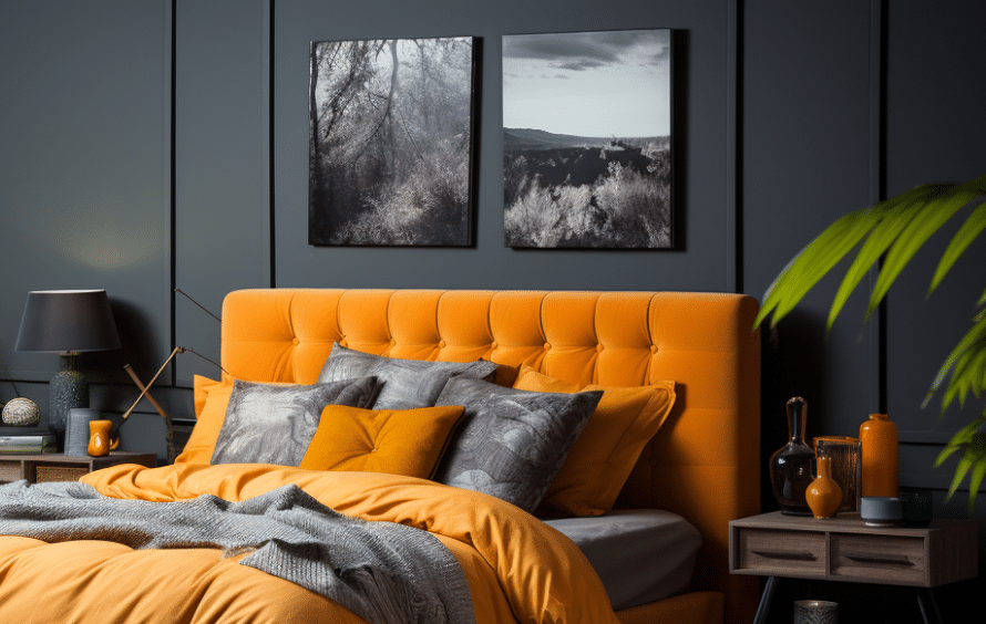 An orange bed frame is a bigger commitment than small accents but can define your space.