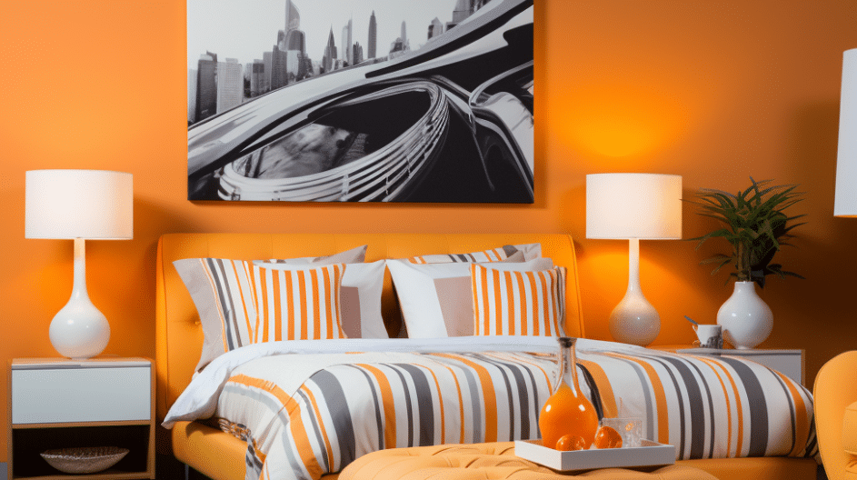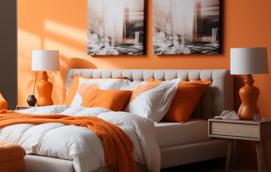 Pairing orange with white creates a clean, fresh look in your bedroom.