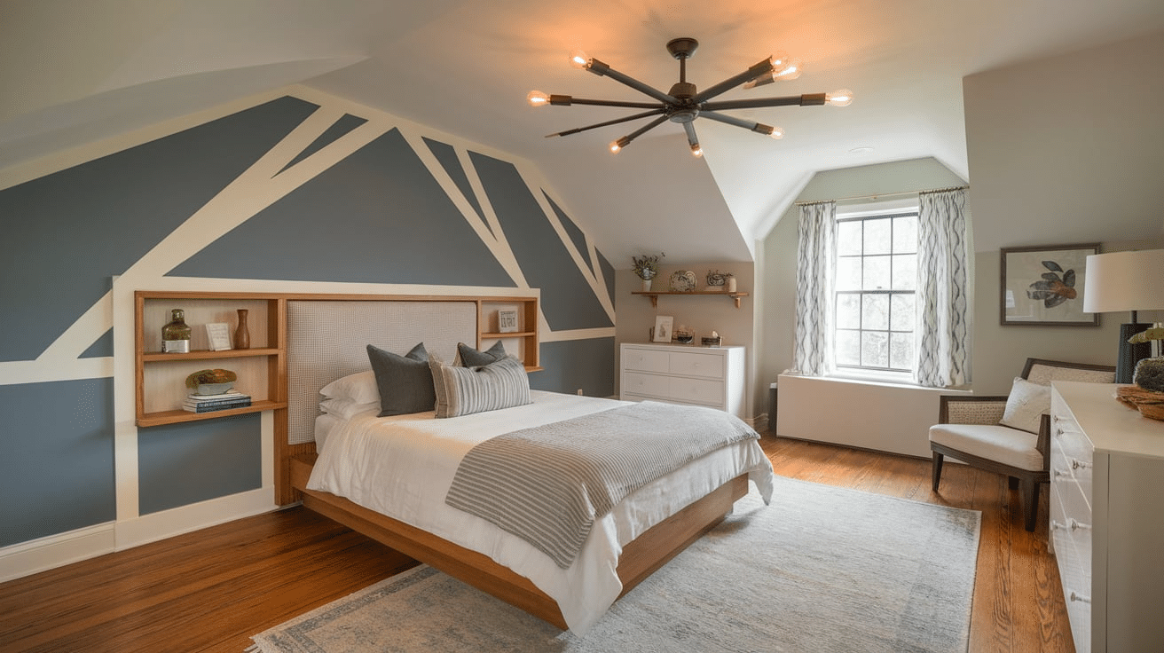 Built-in shelves or under-bed storage help keep the space organized without clutter.