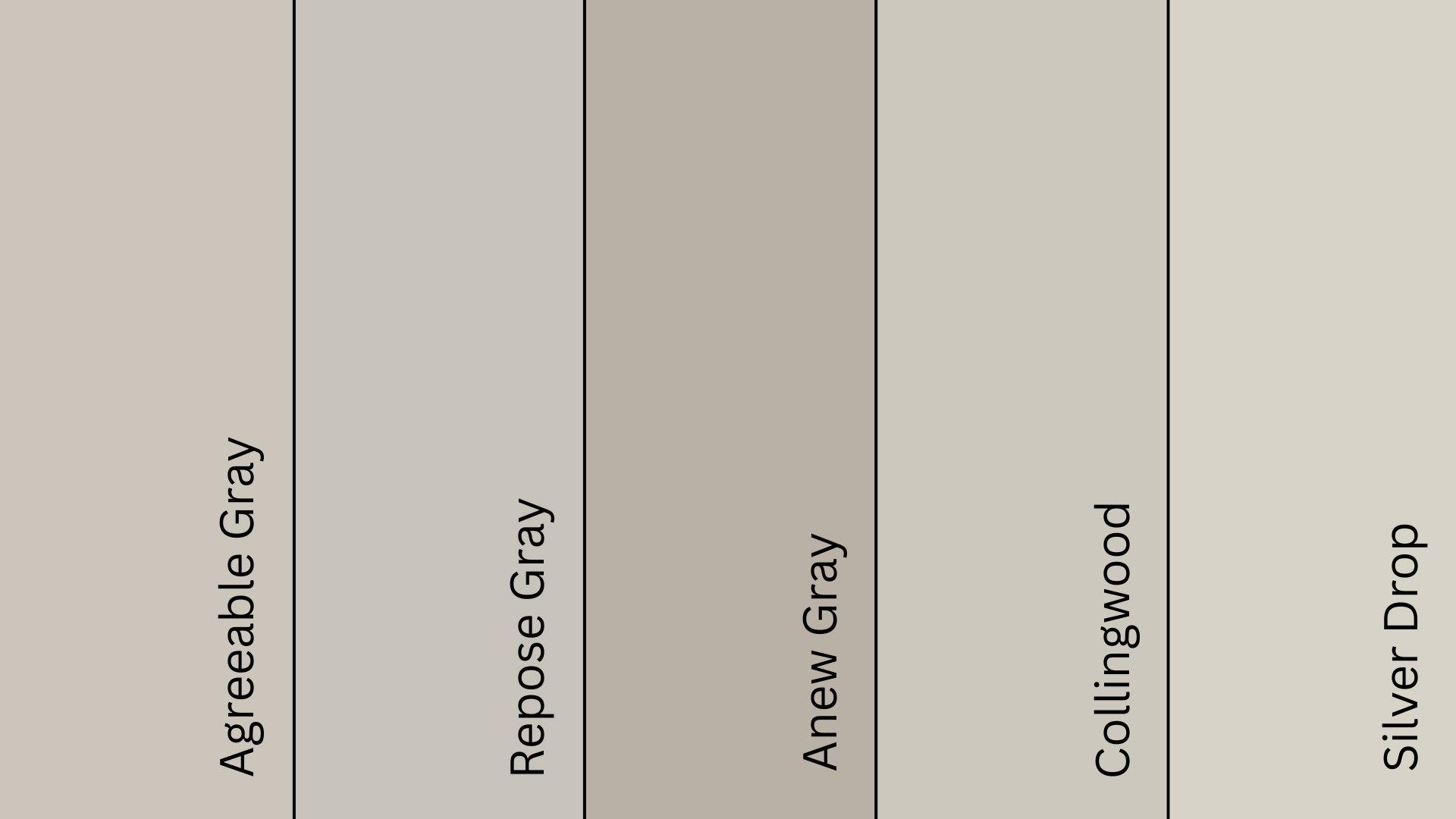 | Anew Gray (SW-7030) | Sherwin-Williams | #BFB6AA | 47 | Deeper and warmer gray with brown undertones |