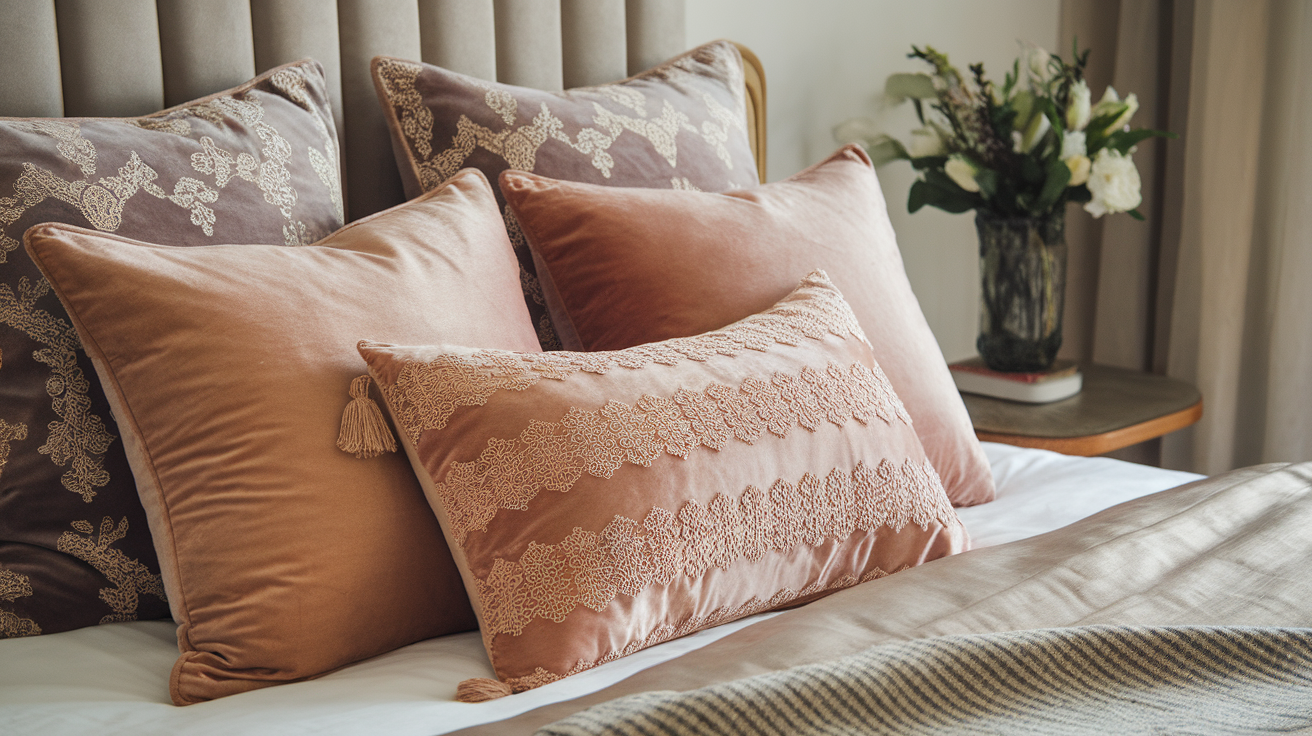 Invest in soft, high-quality bedding with rich textures like satin, velvet, or linen. Layer your pillows in various fabrics such as lace, silk, and cotton for a full, welcoming feel.