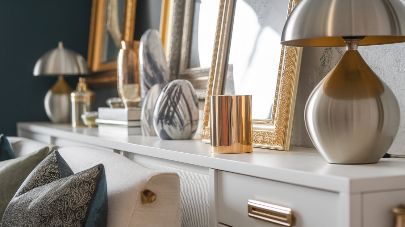 Small metallic picture frames, decorative boxes, or even drawer pulls can introduce shine without being too much. The key is balance—metallic elements should stand out as special touches rather than taking over the room.