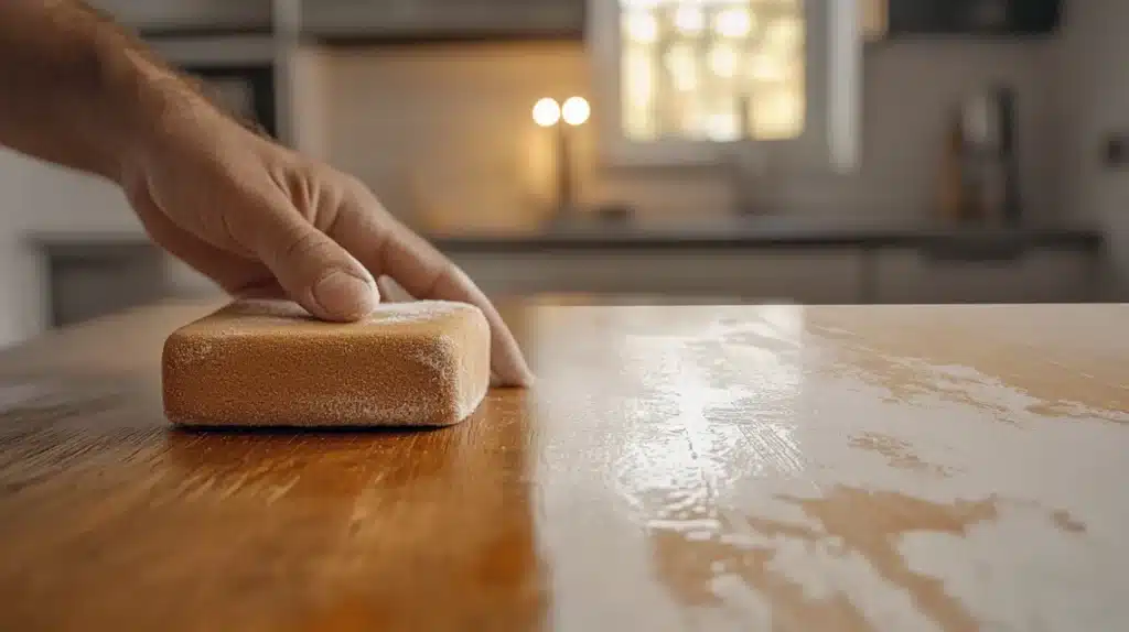 If your wood has a shiny finish, sand it lightly. This helps the product stick and prevents peeling later.
