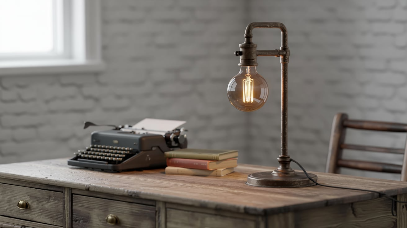 Use these materials on lamps, shelf brackets, or drawer pulls. The finish should be matte or lightly textured for a worn-in feel.