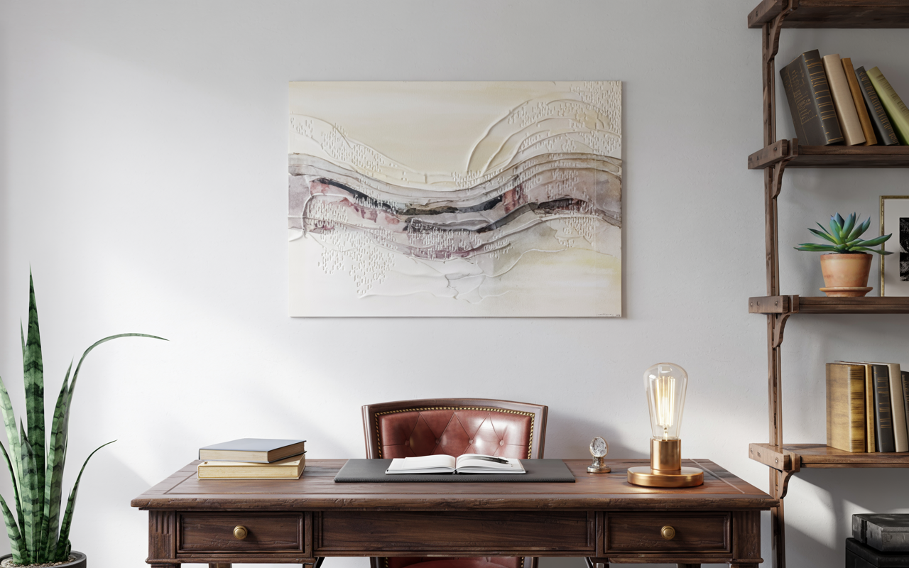 Art with texture gives the room a layered look. Canvas, raised patterns, or mixed materials bring interest without needing bold color.