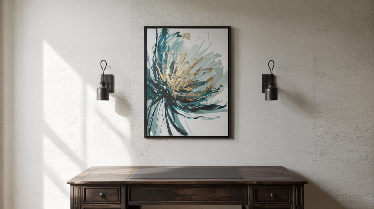 Print a short message that reminds you of your goals or mindset. Frame it in dark wood or steel for a strong, grounded look.