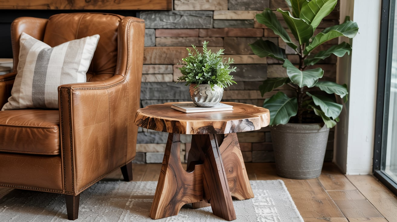 Live-edge trays or tables bring nature into the space. They work well next to a solid metal piece for contrast.