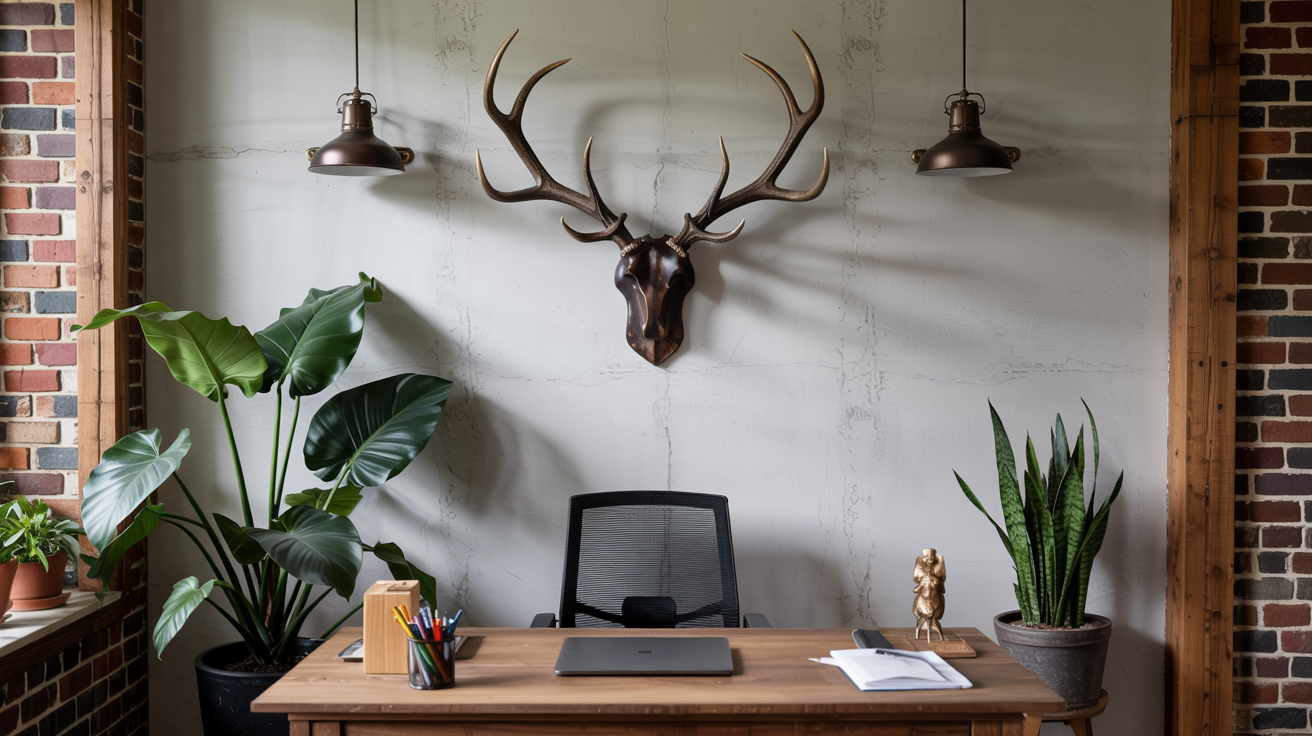 A faux antler mount or aged metal piece adds personality without being too flashy. Keep it simple, one bold piece makes more impact than many.
