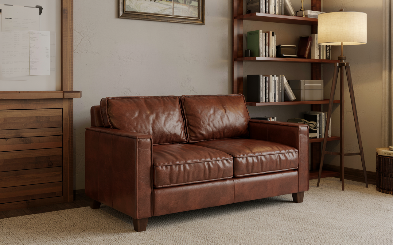 A small sofa gives you another spot to sit, take calls, or relax. Go for one with strong lines and firm cushions. Use darker fabrics or leather to match the rest of the room.